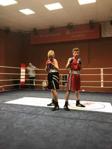 Zaterdag middag bokst Erin Dekkers een uitstekende partij tegen een lokale bokser met 5x zoveel wedstrijden. Niet geimponeerd wint Erin haar partij met 3-0. Ook Sven Cuppen bokst een overtuigende winst. Amy Holzken bokst goed en sterk maar ziet helaas de winst naar de Duitse tegenstander gaan.